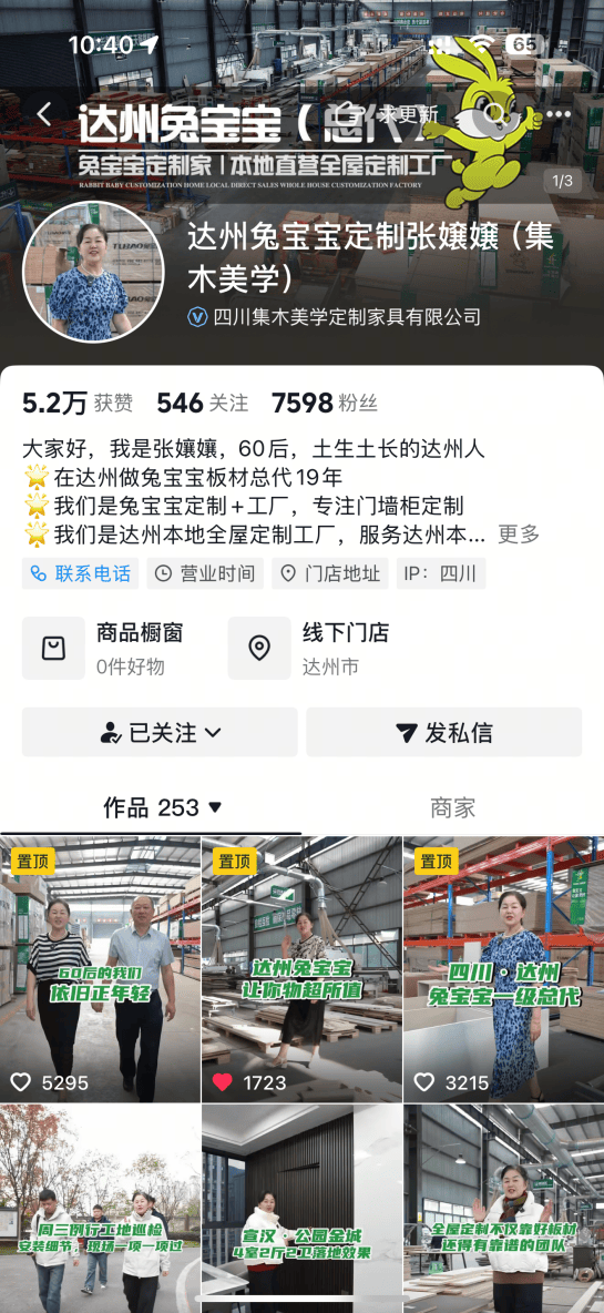 可是她仍是更喜好别人叫她“张嬢嬢”,张嬢嬢是一个详尽的工场办理者,正在领会其他商家通过新零售实现营业提拔,达州兔宝宝的抖音账号一直连结两天一更新的频次,更让“张嬢嬢”这个称号成为了达州板材行业的一张口碑手刺。有特地的配套团队进行办事,查看更多